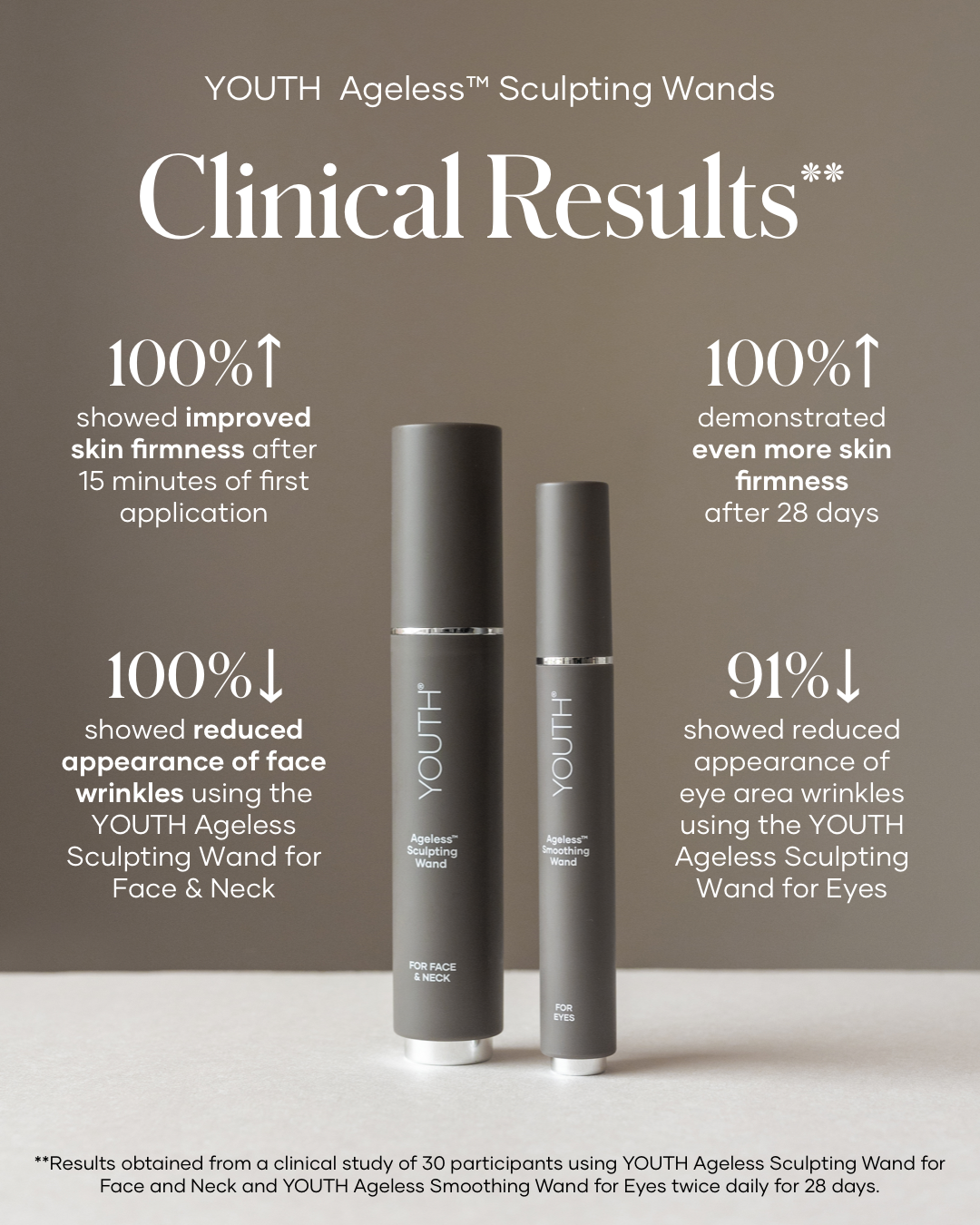 In a 28-day clinical study on the Sculpting Wand (30 participants, twice-daily use):